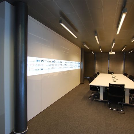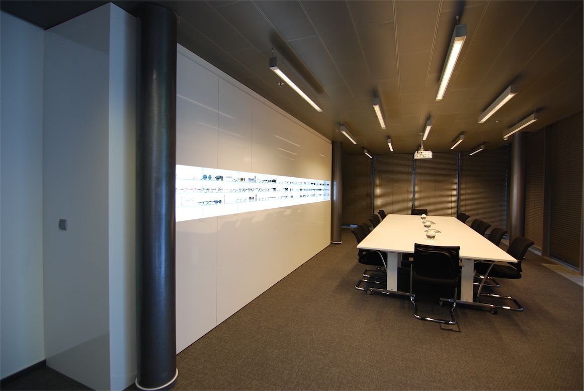 Design and production of a presentation wall and lightbox of the Czech branch of the world's largest glasses manufacturer(SAFILO, Italy).