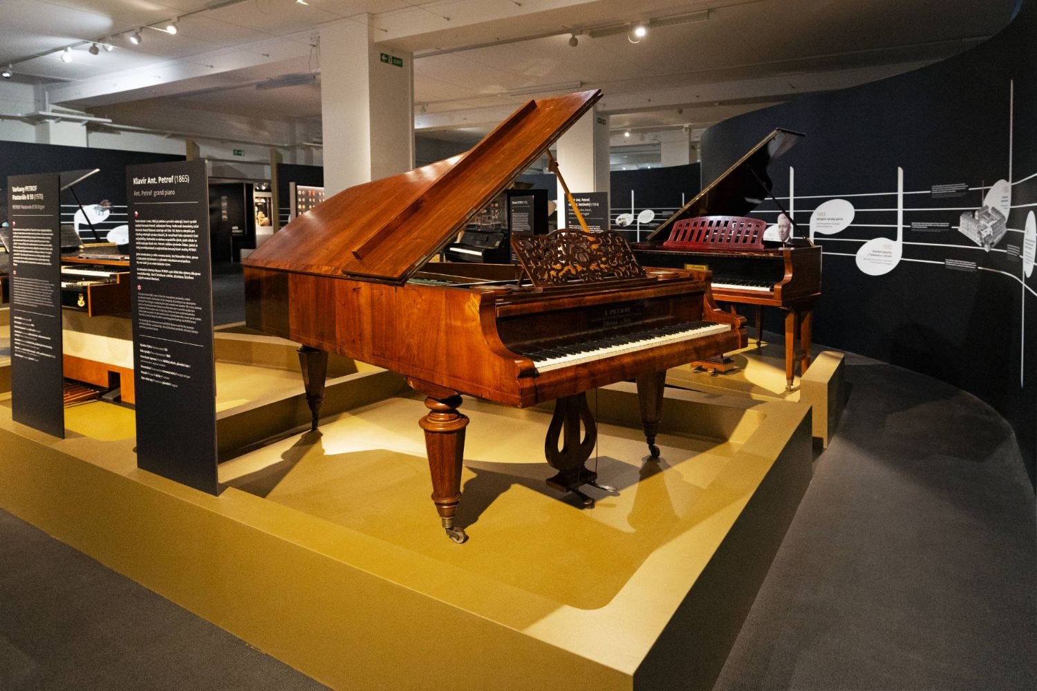 The exhibition "PETROF 160 - piano as a technical work" was created on the occasion of the 160th anniversary of the founding of the company, which is one of the most important European manufacturers of acoustic pianos and grand pianos.