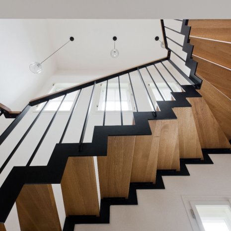 Staircase with steel structure and wooden steps