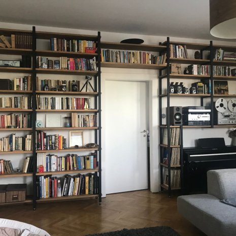 Knihovnu z poctivé dubové spárovky a oceli s povrchovou úpravou v kovářské černi mužete precpat vedomostmi a máte jistotu že to unese.
