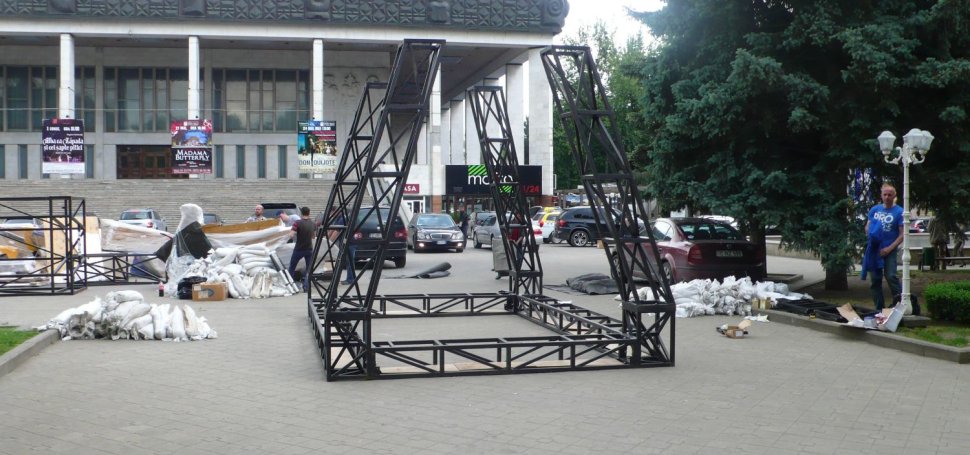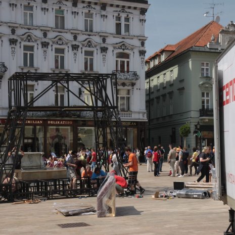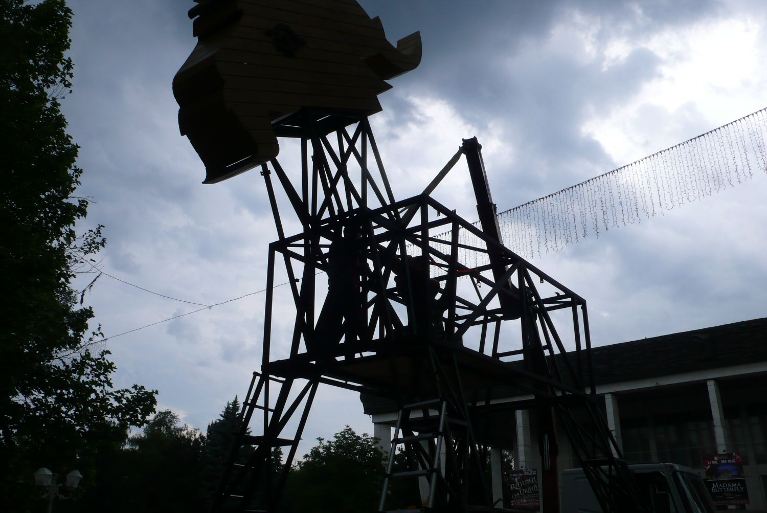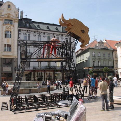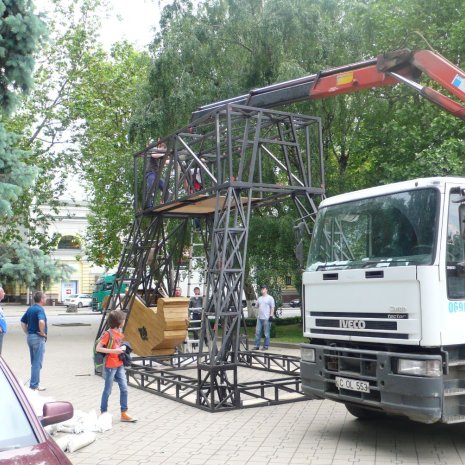 Construction of the Velkopopovický kozel sculpture