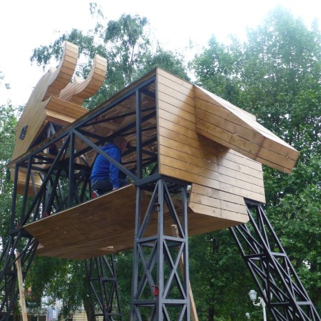 Production of several pieces of prefabricated supporting structure of giant goats intended for wandering in many countries.