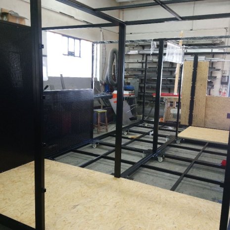 The welded steel construction of the stands made of steel and perforated sheet metal is provided with powder coating. The segments of the assembly are connected by prefabricated joints and allow storage out of season.