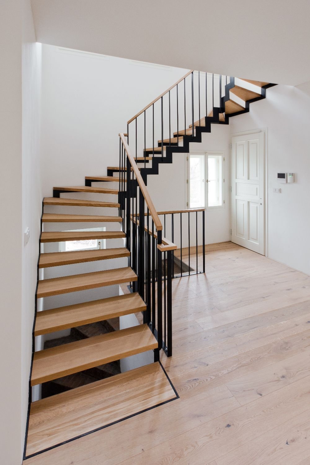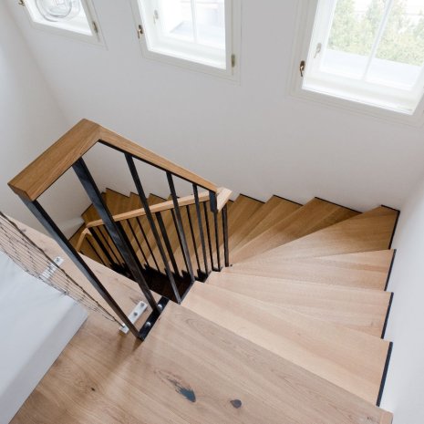 Staircase with steel structure and wooden steps